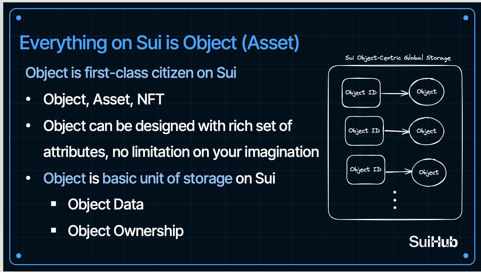 Nhưng Sui không dừng lại ở việc xử lý song song. Mà còn đi xa hơn với thiết kế: Everything on Sui is Object.. Trên Sui, object là first-class citizen. Tất cả từ token, NFT, cho đến game items đều được mô hình hóa như objects với các thuộc tính riêng, dữ liệu riêng, và quan trọng nhất là ownership rõ ràng.